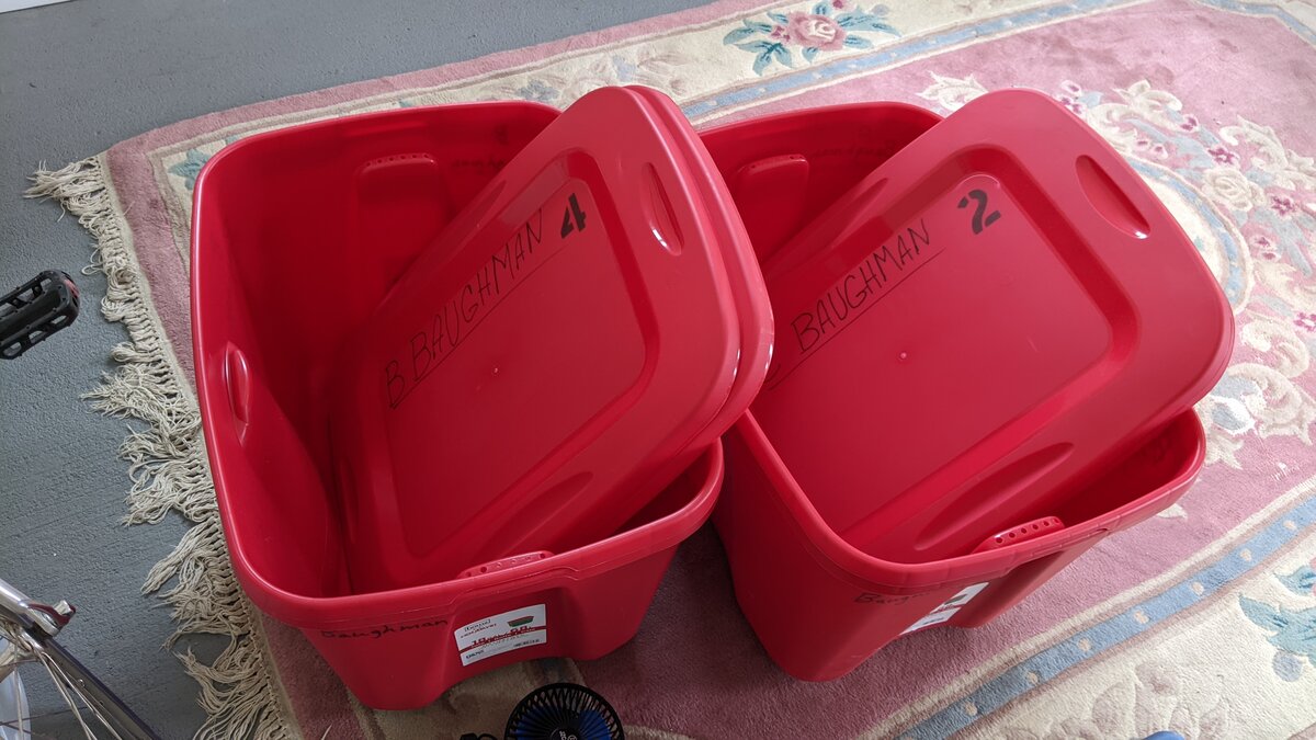 Tubs are required for us to travel on the bus. The organization that owns the bus has been doing this for over 20 years. They know what works and what doesn’t work when transporting and supporting bicyclists across the state of Iowa.